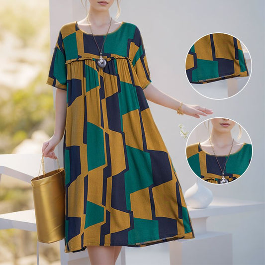 Women’s Oversized Stylish Print Short-sleeve Dress with Pockets