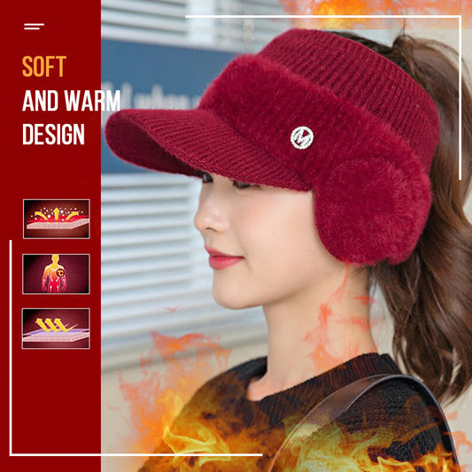 Women's Winter Warm Knit Beanie Caps with Visor